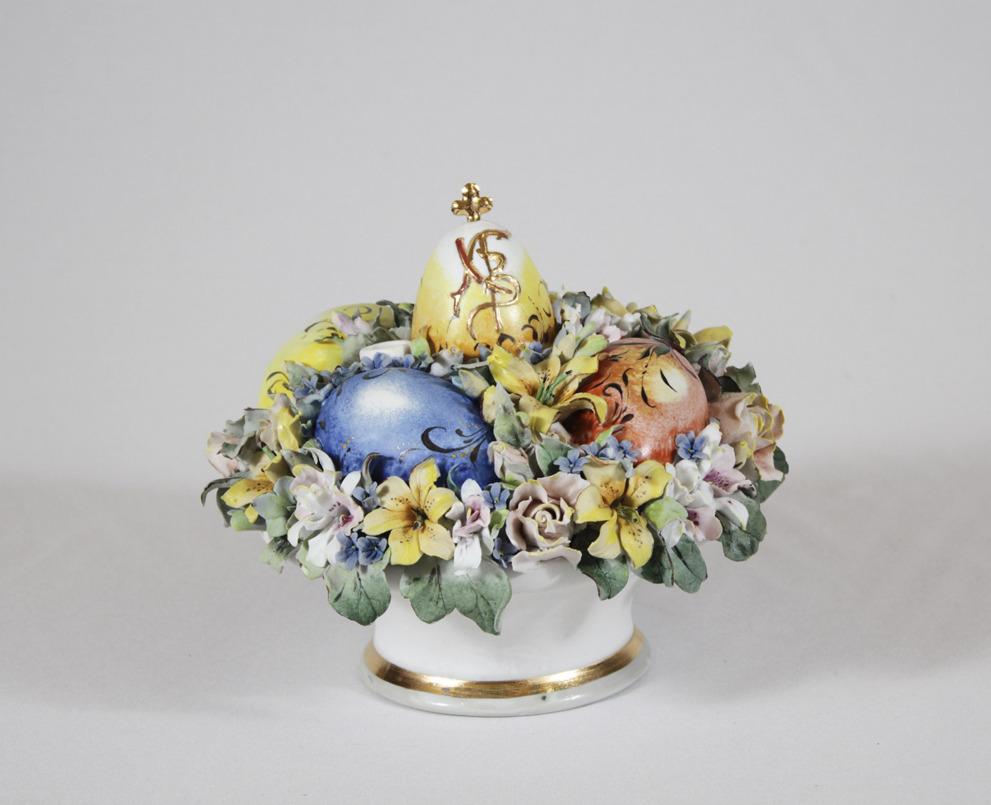 Фарфор, объемная лепнина, подглазурные и надглазурные краски, золото.