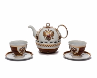 Комплектация: чайник, подставка с местом для свечи, 2 чашки с блюдцами.